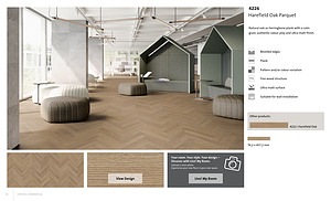 Natural oak as herringbone plank with a calm grain, authentic colour play and ultra-matt finish.